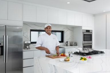 From the moment you arrive, Cielo’s clean lines, soaring ceilings, and seamless transitions between interior and exterior spaces create an effortless connection to the sea. Floor-to-ceiling glass doors open to panoramic views of the turquoise Caribbean, while natural finishes and a neutral palette bring warmth and sophistication to every space. Designed to make the most of Provo's unrivaled beauty, the villa’s open-plan layout, multiple living areas, and oceanfront terraces ensure every moment is framed by water and sky.