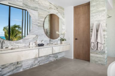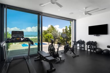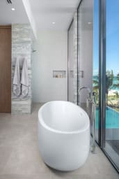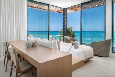 Designed with both style and scale in mind, The Point offers expansive indoor and outdoor living spaces that embrace the sun, sea breezes, and panoramic vistas. Outdoor areas include one of the largest infinity pools on the island, a hot tub, and direct access to the beach—perfect for swimming, relaxing, or entertaining under the Caribbean sky. Premium amenities include a fully equipped chef’s kitchen, indoor and covered outdoor dining, a media and entertainment room, a gym/fitness area, and exclusive access to private tennis and pickleball courts.